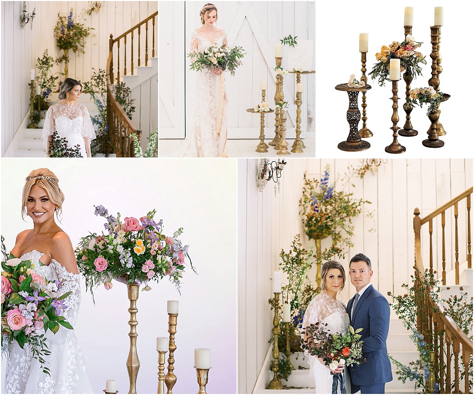 The Less is More Ceremony Backdrop! Eco- Friendly and Sustainable. Authentic brass floor height candlesticks.