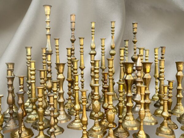 Our authentic vintage brass floor candles have been used for string quartet concerts, wedding ceremony’s, and grand entrances. These are heavy, aged with the patina of brass approx 60 to 75 years old.