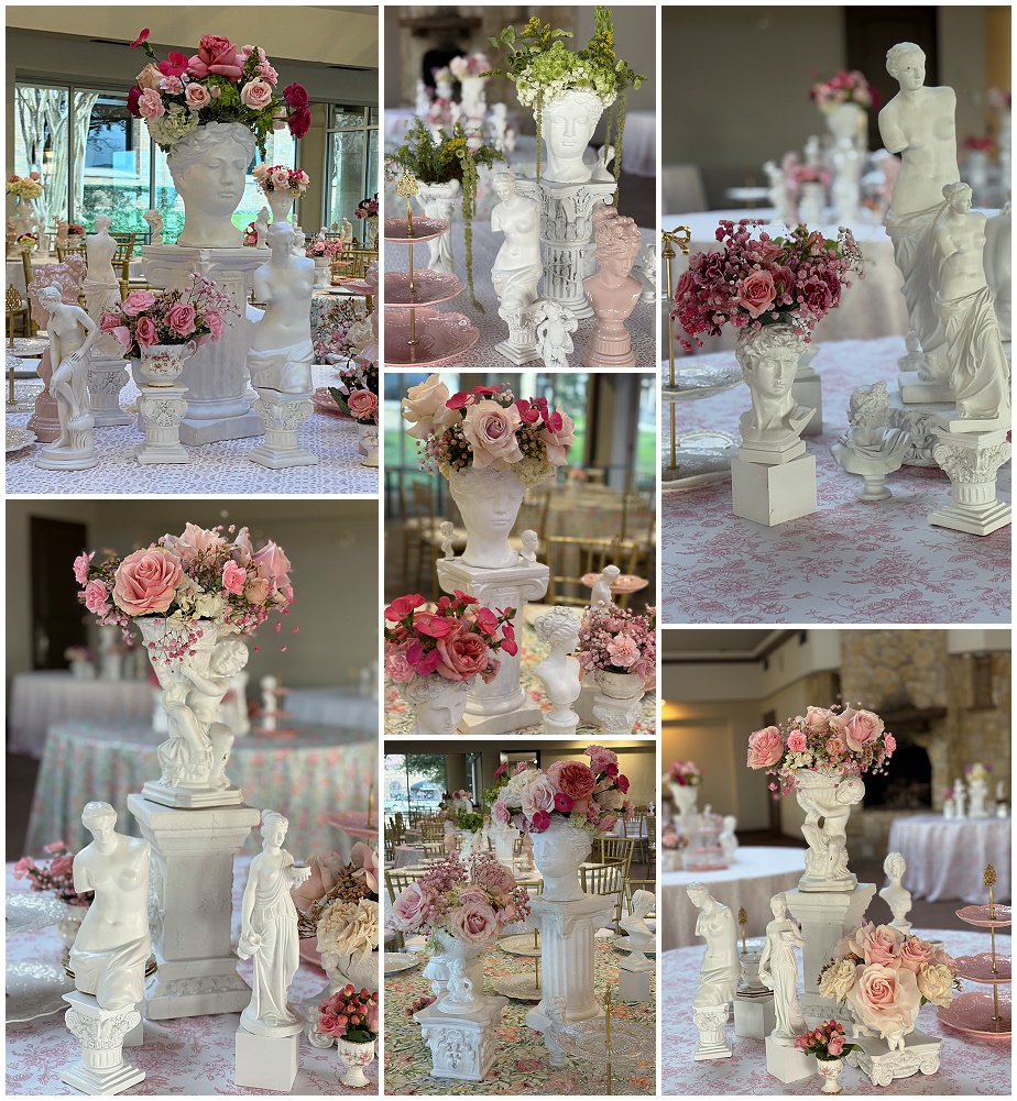 Why limit event tables to flowers when you can create a whimsical, eye-catching display using our sculptural accents from the Greco-Roman Regency Statues & Sculptural Accent Collection—designed to bring drama, personality, and layered visual interest to every table.